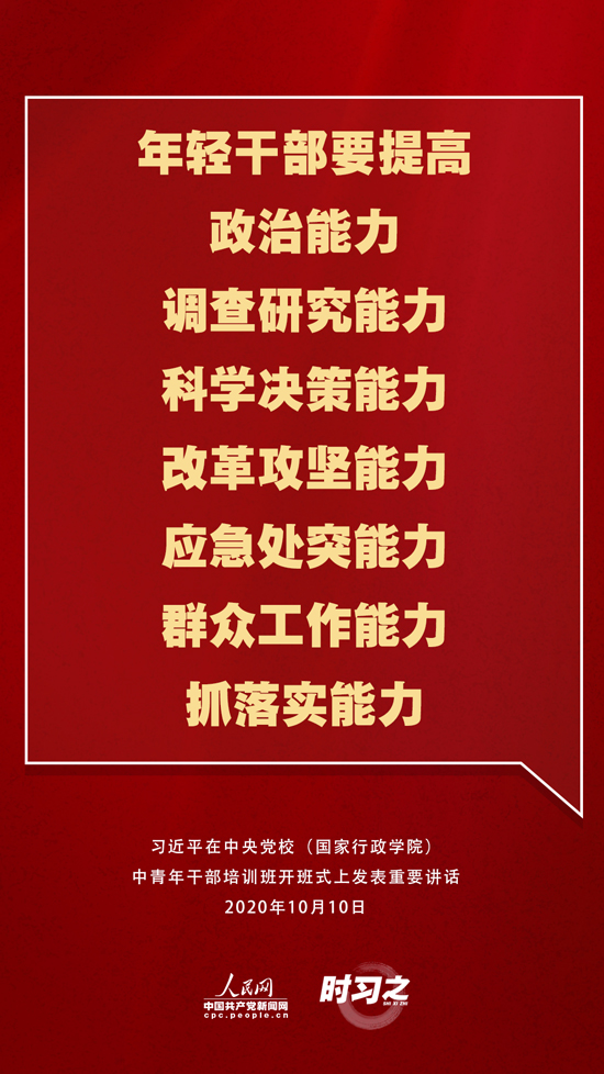 在此次开班式上,习近平从多个方面对年轻干部提出了新要求,人民网·中国共产党新闻网“时习之”栏目为