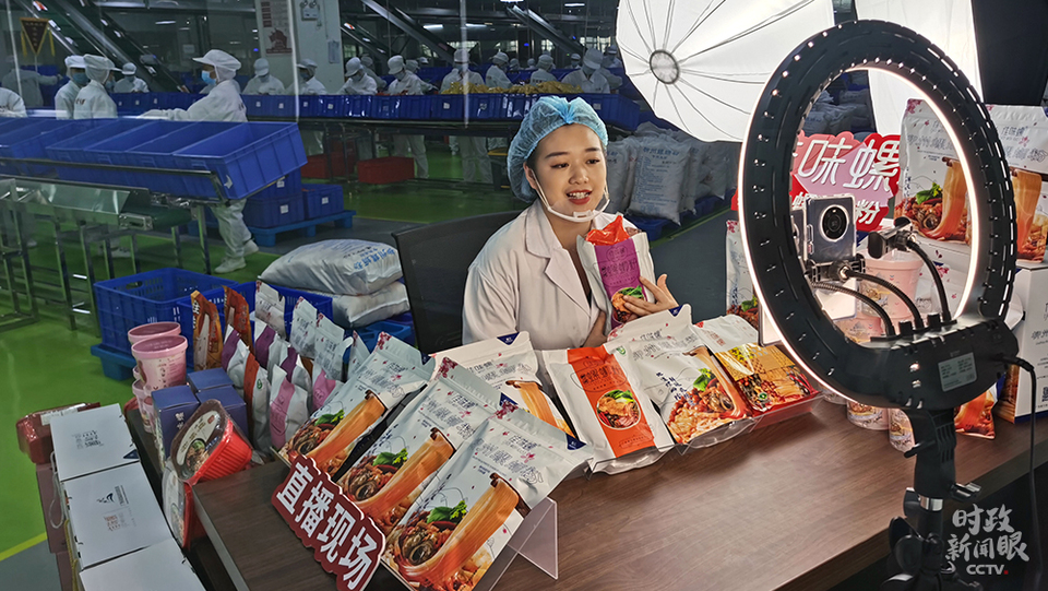 △袋装螺蛳粉直播带货现场(总台央视记者许永松拍摄)
