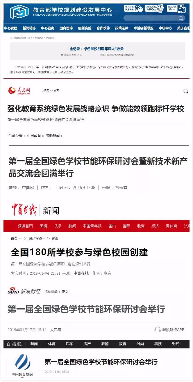 2018年12月,第一届全国绿色学校节能环保研讨会暨新技术新产品交流会在深圳圆满举行。本次会议由教育部学校规划建设发展中心、生态环境部宣教中心、中国质量认证中心联合主办,来自清华大学、复旦大学、人民大学等260余所高校,上海、河南、山东等10个省市教育行政部门,60 余家企业的共700 余名代表参会。