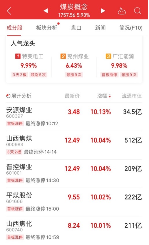 9月2日,煤炭期货主力合约早间集体上涨,A股煤炭股随之走强,截至收盘,安源煤业集团股份有限公司(安源煤业,600397)、山西焦化集团有限公司(山西焦化,600740)、平顶山天安煤业股份有限公司(平煤股份,601666)涨停,山西焦煤集团有限责任公司(山西焦煤,000983)、淮北矿业控股股份有限责任公司(淮北矿业,600985)等企业涨幅居前。