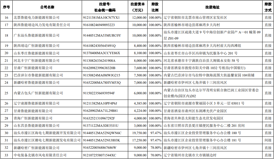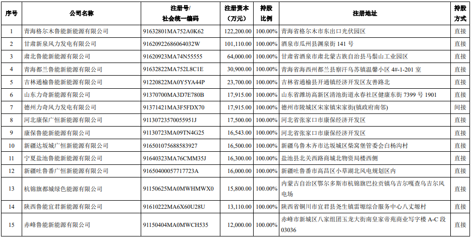 截至目前,鲁能新能源旗下有36家直接控股子公司和3家间接控股子公司,在此次交易中对业绩造成影响的27家下属公司如下: