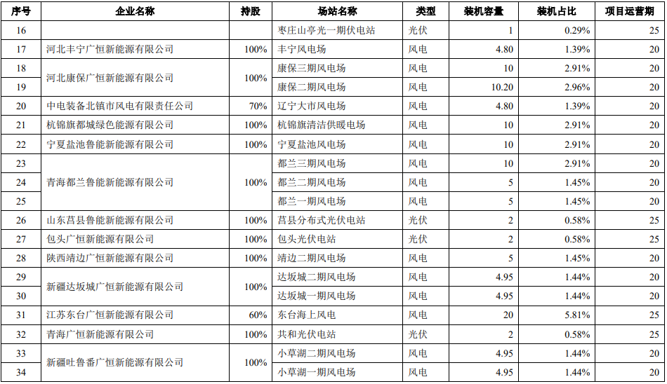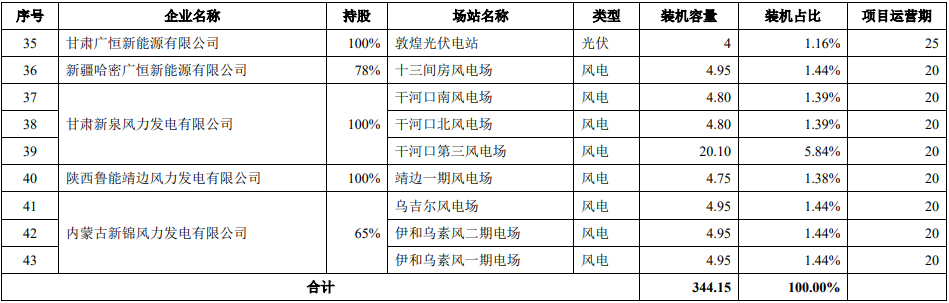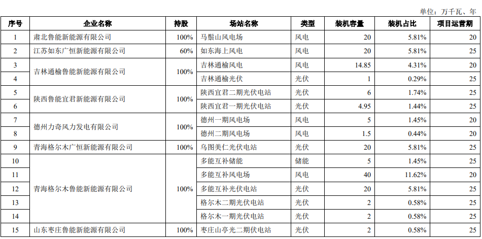 鲁能新能源下属控股正在运营的风力发电和光伏发电项目的基本情况如下所示: