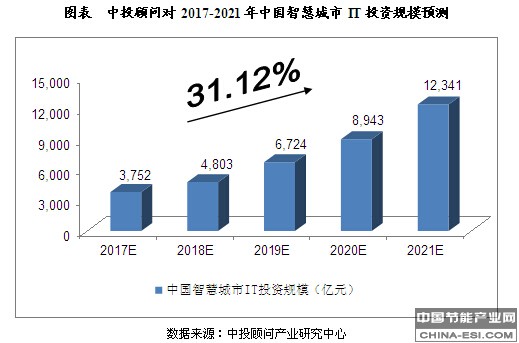 中投顾问对2017-2021年中国智慧城市IT投资规模预测