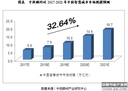 中投顾问对2017-2021年中国智慧城市市场规模预测