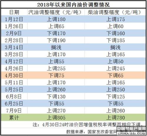 上一轮调价(7月9日)时,油价创下年内最大涨幅,汽油价格每吨上调270元,柴油价格每吨上调260元。随后,受多种因素影响,国际油价高位回落。
