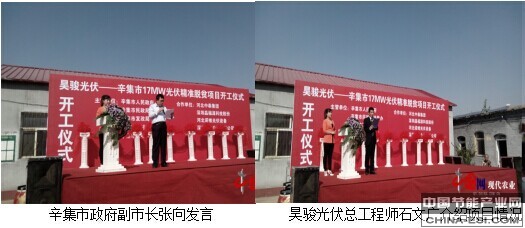 2016年9月29日由辛集市人民政府、市民政局扶贫办、市发改局、信用联社、市供电公司为主管单位和主办单位辛集市昊骏光伏能源有限公司,以及合作单位深圳晶福源科技股份有限公司在辛集市和睦井乡石槽李村,举行启动“昊骏光伏――辛集市17MW光伏精准脱贫项目”开工仪式,各部门主要领导上台为开工仪式剪彩 。在开工仪式上,辛集市政府副市长张向同志对利用光伏发电这一精准脱贫模式做出充分肯定。对首批试运行光伏发电站,在本乡几个村的贫困农户屋顶上安装成功表示高度认可和满意。