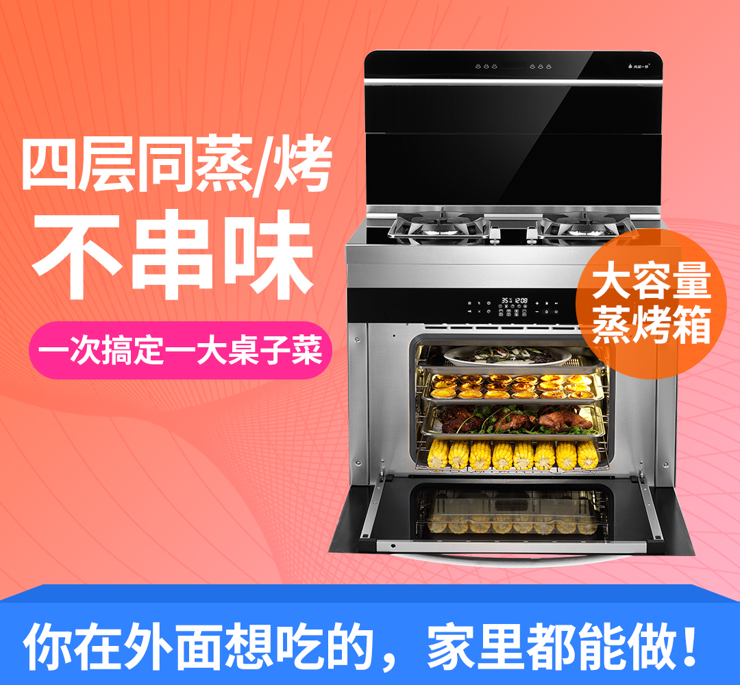 火星一号V02蒸烤一体集成灶可让你坐享美食,食材放进蒸箱,其他的由它来!