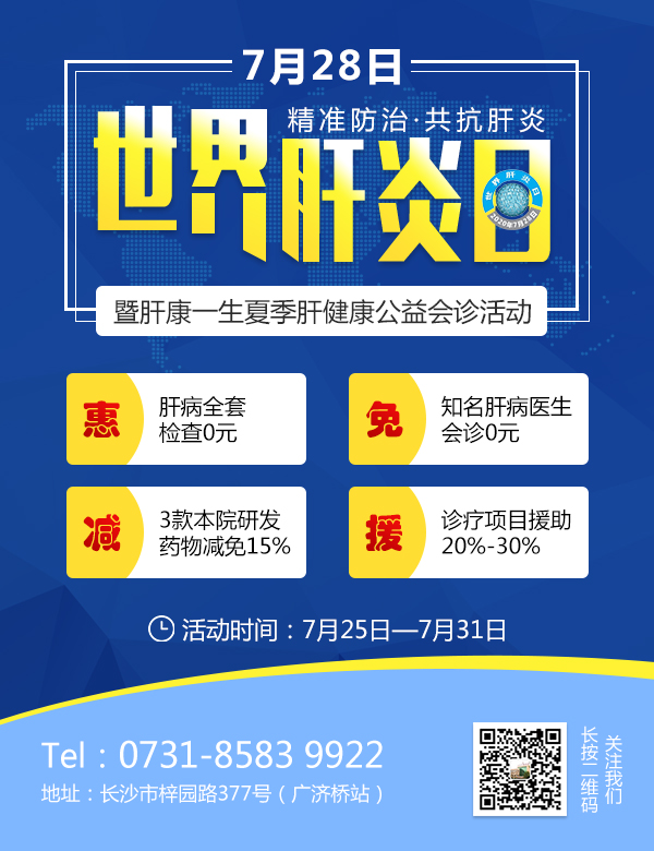 2020年7月28日是第十个世界肝炎日,世界卫生组织提出“2030年消除肝炎危害的目标”,但我国迄今为止仍有数量庞大的肝炎患者无法接受正规治疗,长沙方泰肝病医院作为湖南省重点肝病诊疗中心,积极响应世卫组织号召,在世界肝炎日到来之际举行7·28世界肝炎日暨肝康一生夏季全民肝健康专家大型会诊活动。