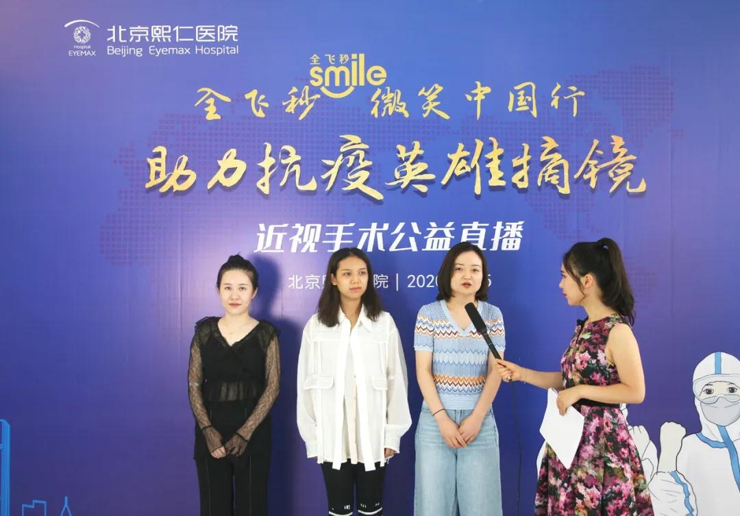 热烈祝贺北京熙仁眼科医院“全飞秒微笑中国行,助抗疫英雄摘镜,近视手术公益直播”圆满落幕!7月25日周六上午10点,我院为曾援鄂抗疫一线救治、负责核酸检测与筛查的5名护士,免费进行了全飞秒SMILE激光近视手术,助力她们重获清晰视界,使未来的临床工作和生活视力能更加清晰、视物更加舒适、顺畅。截至活动结束,直播各平台累计吸引了60多万观众观看。