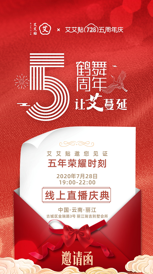 回首5载,艾艾贴的发展之路,就是一条持续奋进的逆袭篇章。如今勇立潮头的艾艾贴, 也将在明天,2020年7月28日,迎来她5周岁的生日。本次艾艾贴5周年庆典的主会场将设在云南丽江。艾艾贴的5周年庆典仪式,也安排在了7月28日19:00—22:00这个时间段。