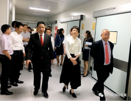 成都市副市长刘筱柳、成都成华区区委副书记、区长蒲发友等领导在圣丹福国际医疗集团领导林志程、潘锡源等人的陪同下参观圣丹福整形。