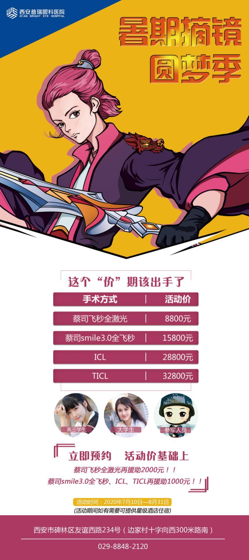 为了让更多的学子圆梦,能够摘掉眼镜达成心愿,西安普瑞眼科医院在暑期开展了“暑期摘镜圆梦季”活动,学生和参军者还有专享优惠,同时提供一对一的贴心诊疗服务,让近视的朋友可以享受到安全便捷的超值摘镜体验。