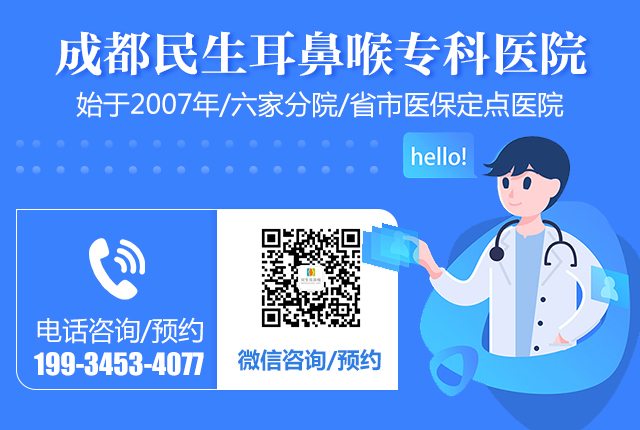 成都民生耳鼻喉专科医院是具有13年历史的大型连锁耳鼻喉专科品牌,设有西南耳鼻喉会诊平台,是西南少有的可以做耳鼻咽喉头颈复杂手术的专科医院。成都民生耳鼻喉专科医院是华西耳聋耳鸣课题四川地区指导医院,也是四川省人民医院/四川省肿瘤医院/成都市第一人民医院等大型三甲医院的耳鼻喉双向转诊医院,是四川省市医保新农合定点单位。