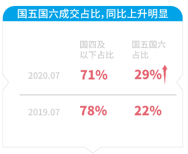 天天拍车数据显示,其国五国六二手车成交量占比呈现出明显上升态势。同比去年同期,国五二手车成交占比提升了6%,同时国六二手车成交占比也提升了1%,国五国六二手车成交总占比达到了29%。与此相对的是,国四及以下二手车成交占比缩减了7%。随着国六排放标准全面实施,会有越来越多的国五国六二手车流入二手车市场,未来成交量占比将进一步提升。