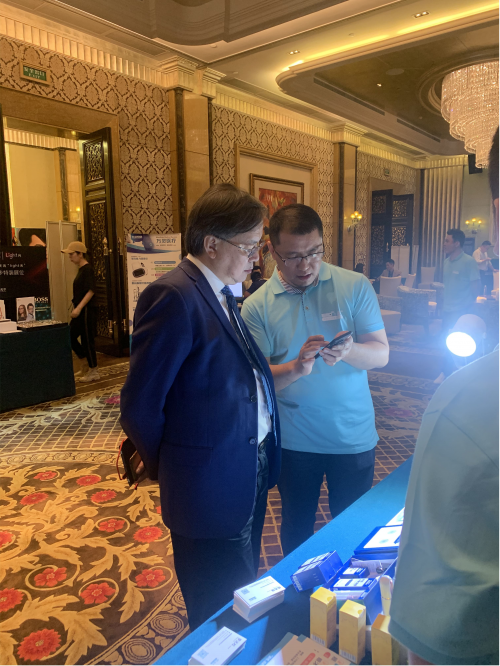 在眼镜人峰会现场,深圳聪明目的核心产品——“智能”学习防驼护眼仪、喷洒式给药器吸引了来自全国各地的眼科专家、医生、经销商等业界人士的目光,给参会人员带来了不一样的护眼体验,受到了行业伙伴的认可与赞同。