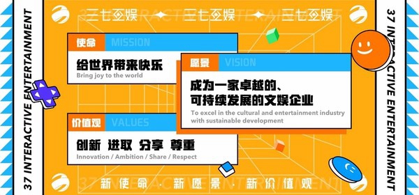 上一阶段积累的企业文化已经支撑三七互娱稳步发展了十年,在企业的第二个十年伊始,升级新的使命、新的愿景、新的价值观,旨在为员工提供更大的成长发展及自我实现的平台以及更好的文化氛围,为用户创造层出不穷的惊喜。同时,新的企业文化也将进一步规范员工言行,提升执行力和效率,通过共同的理念,让三七互娱的员工紧密团结在一起,形成一股强大的凝聚力,引领企业的长期发展。三七互娱管委会表示,新的企业文化,将形成具有强大感召力的企业软实力,让三七互娱在国际化舞台上走出更加精彩的步伐。未来,也希望能有更多优秀的人才加入到三七互娱,一起“给世界带来快乐”。