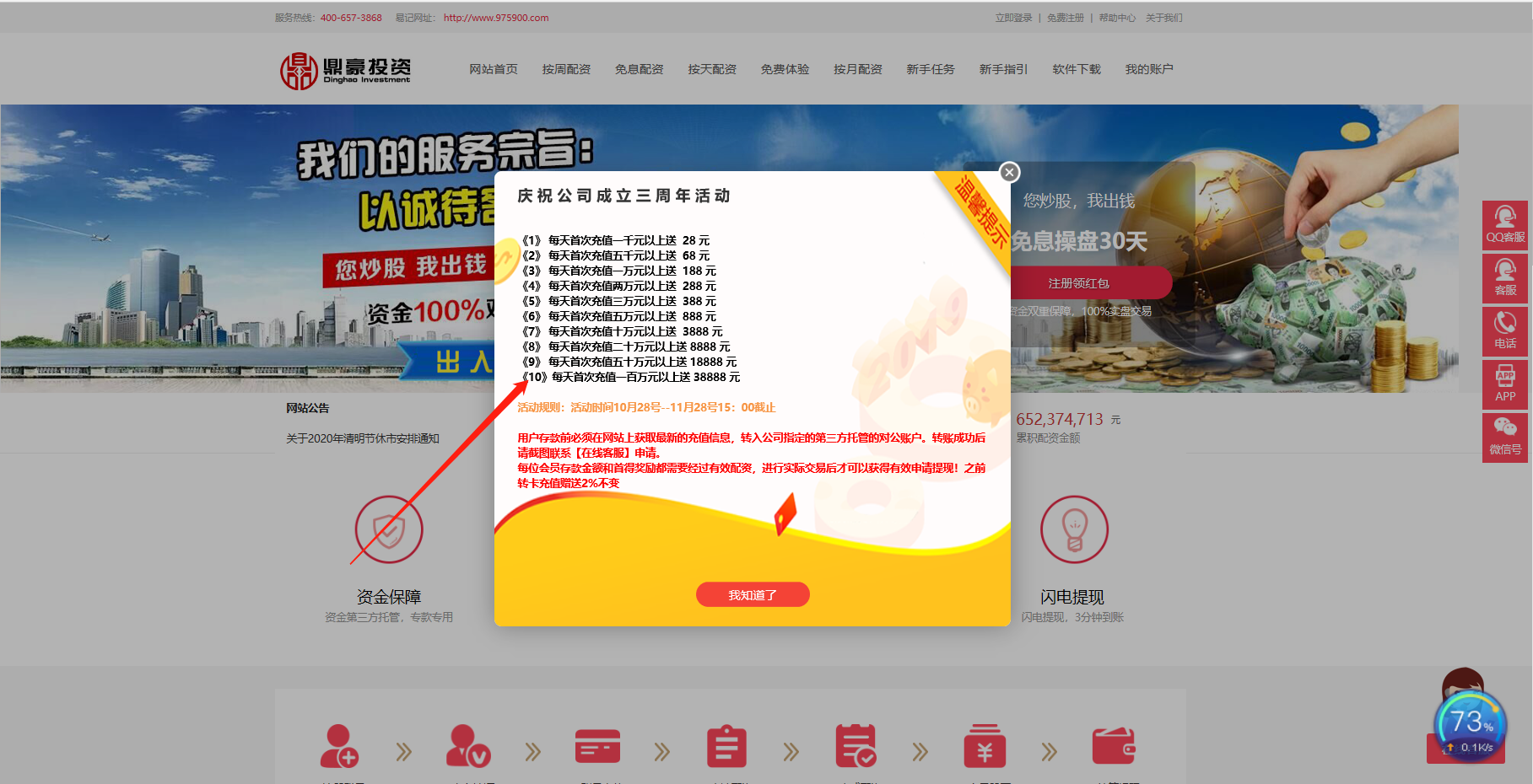 记者从鼎豪配资官方获悉,该活动不设立任何门槛,凡在其公司进行开户的股民均可报名参加。在采访之中,鼎豪配资表示:“除却主打的免费体验以及全程免息外,我们还设有新人注册发放现金红包,充值最高返利38888元,按周、按月配资的福利活动,在解决股民本身配资难、投资成本高问题的同时,也进一步加强公司与广大用户之间的契合度与凝聚力。”