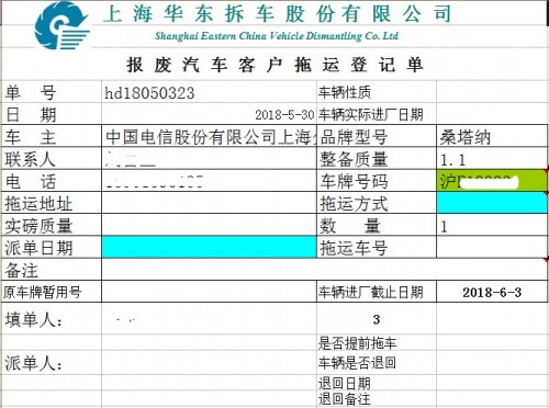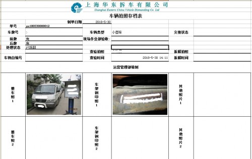 公司对车辆进行查验登记,检查车辆是否缺件,并登记《》,上传相关车辆的照片,待拆解后,上传相关拆解照片。
