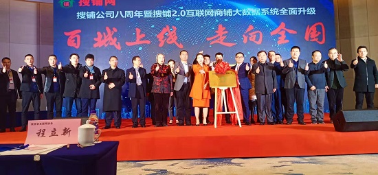 2020年1月12日,搜铺公司在中国西安欧亚经济论坛永久会址举行了“搜铺公司八周年暨搜铺2.0互联网商铺大数据系统全面升级 百城上线 走向全国”为主题的新闻发布会。陕西省互联网协会、陕西省中小企业协会、陕西省安徽商会、陕西省餐饮协会、华为西安研究所、西北工业大学等数十家单位参加。来自全国各地的20余位企业家代表参加了《战略合作》签约仪式。