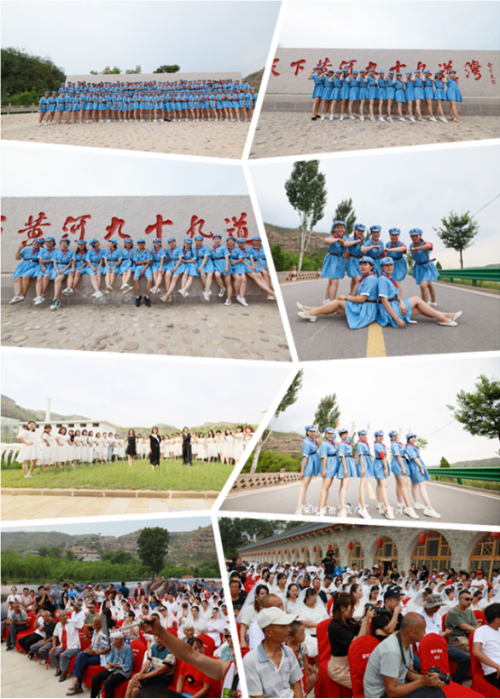 美思康宸成都分公司的九十九名穿红军服装的代理商在黄河岸边,和荷叶坪村民一起唱响《黄河船夫曲》和《保卫黄河》。