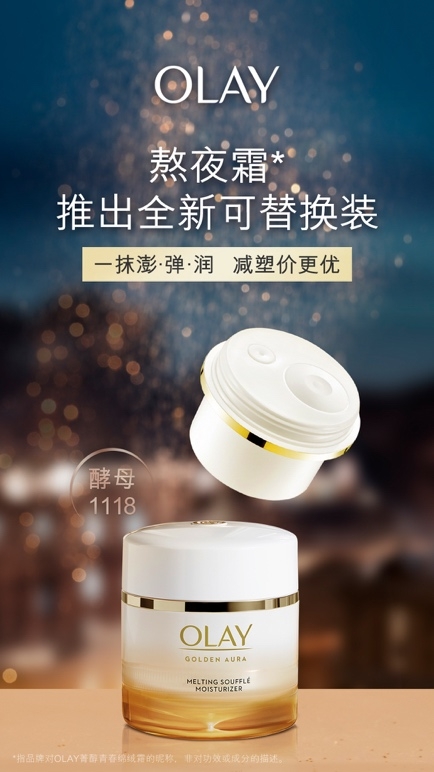 近日,宝洁OLAY熬夜霜*正式推出全新可替换装。这是OLAY继美国推出大红瓶可替换装后,国内再度推出的全新熬夜霜*限量版替换装。每使用一个可替换装,便可少用一套塑料瓶,相当于拯救两只小型海鸟。尽责尽美,可填充包装的每一小步,都在在帮助实现地球的可持续发展。
