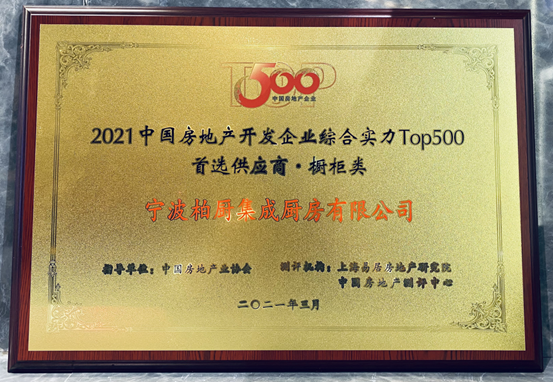 日前,以“远见·共赢”为主题的中国房地产开发企业综合实力测评成果发布会暨房地产高峰论坛在上海中心花园礼堂盛大召开。据悉此次大会是由中国房地产业协会和上海易居房地产研究院中国房地产测评中心主办,同时大会还发布了更为权威的《2021中国房地产开发企业综合实力TOP500测评研究报告》和《2021中国房地产开发企业综合实力TOP500首选供应商服务商品牌测评研究报告》,成为2021年地产界发展的风向标。而柏厨家居,则以出色的品牌实力和客户服务能力,被大会授予2021中国房地产开发企业综合实力Top500橱柜类首选供应商。