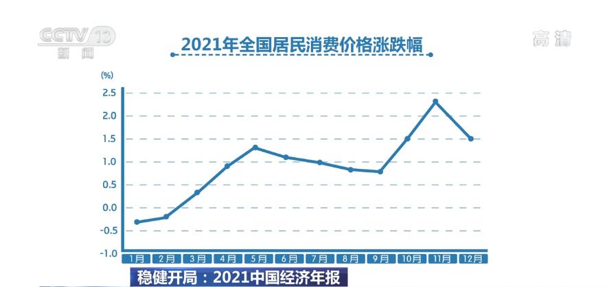 数据显示,2021年全年,全国居民消费价格比上年上涨0.9%。