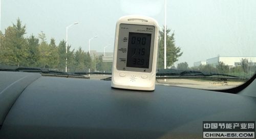 马上进入车内,PM2.5数值为222,相较于户外,已经好了很多。为体现空气环境复杂性,小编还是决定开出去兜一圈,同时开启车内空气洁净系统。