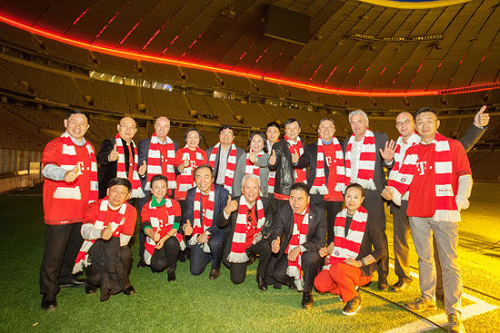 中国驻德大使史明德(中)与蒋锡培、陈晓芬合影10月15日,企业家参访拜仁慕尼黑足球俱乐部