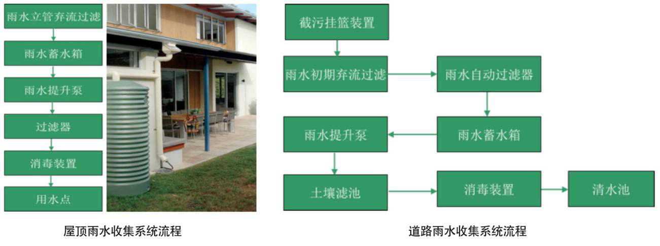 道路雨水收集是通过道路设计,让道路雨水通过下水道排入沿途大型蓄水箱,通过过滤系统和消毒装置,最后送入清水池重新使用。