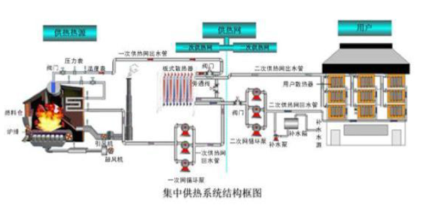 随着我国经济的发展,做为城市基础设施的热力网供热系统发展很快,系统图见以下。这种供热系统是取缔多个小型锅炉房,将供热热源集中一处,或采用热电联产,这种情况不仅有利于节约能源、集中调配热力,也利于治理环境。目前全国建有集中供热设施的城市已超过40%,而且还有逐年增加的趋势。
