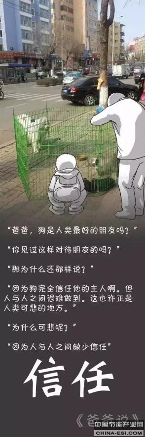 “爸爸,狗是人类最好的朋友吗?” “你见过这样对待朋友的吗?” “那为什么还那样说?” “因为狗完全信任他的主人啊。但人与人之间很难做到。这也许正是人类可悲的地方。” “为什么可悲呢?” “因为人与人之间缺少信任。”——信任