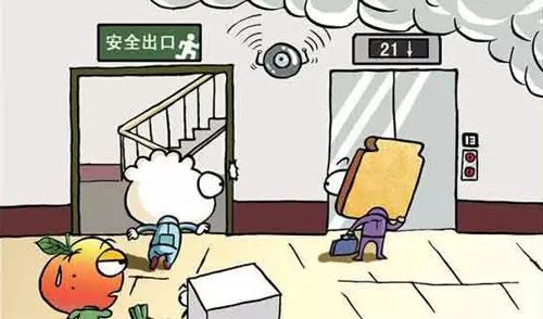 千万不要使用电梯,应从消防疏散楼梯撤离。按照火灾逃生路线图或疏散指示标志逃生。当楼梯被浓烟或大火封堵时,不要贸然冲过去。必须随身携带钥匙,一旦去路被堵,可以及时退回房间再寻良策。