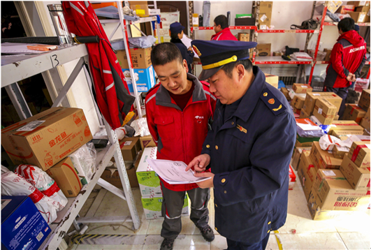 11月9日,河北省大厂回族自治县工商局执法人员在对辖区内的快递企业进行专项检查。