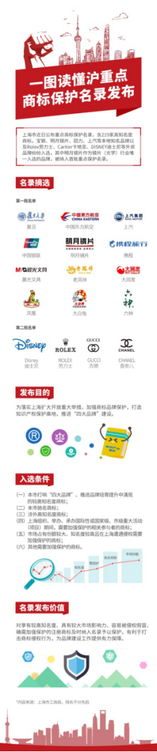 近日,上海市公布了两批重点商标保护名录,明月镜片作为镜片(光学)行业唯一入选品牌,被纳入首批重点保护名录,一同公布的还有东方航空、上汽集团、携程旅行等本地知名品牌,以及Rolex劳力士、Cartier卡地亚、Disney迪士尼等外资品牌共219家高知名度商标,保护有效期至2020年6月30日。