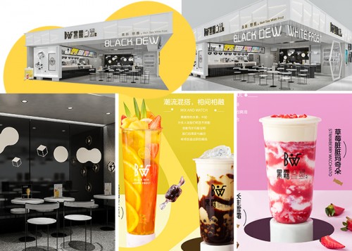 随着90后以及00后新生代消费者逐渐占据消费市场,在茶饮市场上不仅要求于满足产品的质量,也要求空间场景的消费体验,黑露白霜团队充分考虑店铺后期落地的可操作性,店铺在设计之初参考多个同类店铺,在空间设计上作减法,在保证空间整体效果的同时,尽量简约化,减轻消费者视觉上的繁杂负担。作为一个招商品牌,黑露白霜为投资商打造出一套模块化装修方案——将店内所有的软装设计进行模块化拆分设计,投资商可以根据自身实际需要,自主选择拼装。这在业界是领先的优点在于,节省了20%左右的装修费用,将工时缩短7~15天。
