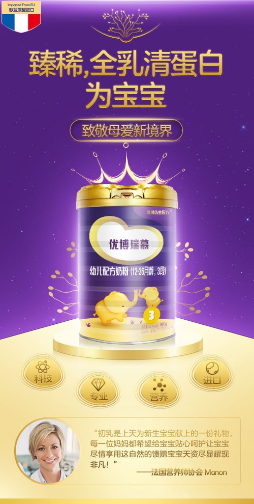 但初乳的珍稀,不仅在于特别的营养价值,更在于它的弥足珍贵,初乳存续时间只有5天,这以后初乳的成分几乎逐日都有明显变化:蛋白质和无机质的含量逐渐减少,乳糖含量逐日增加,酪蛋白比例逐日上升,经过6~15天的时间转变为常乳。为了让宝宝能够零时间限制的享受到初乳的呵护,法版优博瑞慕以仿生配方为基础,采用全球领先科技,研制出突破性的全乳清蛋白配方,营养成分无限接近初乳,贴合宝宝需求。