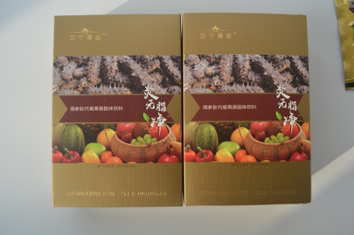 目前,百宁康业品牌旗下拥有海参肽餐包、水木净(肝胆排毒、百宁康业酵素等一系列产品,其中,海参肽餐包由公司创始人宁海峰先生与台湾保健品行业标准制定者之一,来自于国立台湾海洋大学的资深教授郭湘平博士共同研发,产品通过了台湾SGS机构权威检测、国际通用普尼检测报告、海关出入境质量检验。