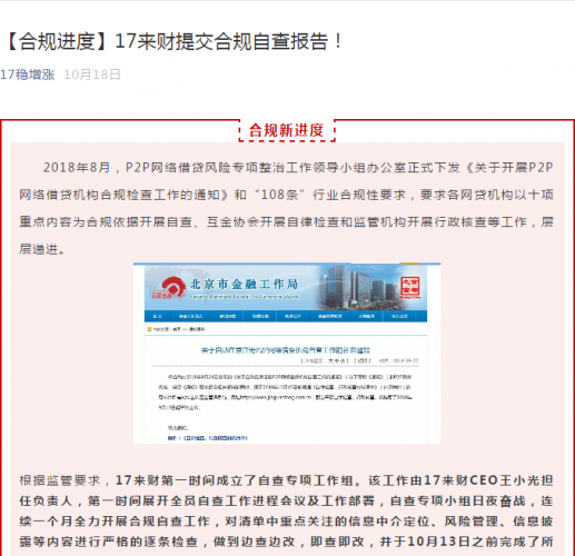 17来财:100%国有控股+提交自查报告+接入国家互联网应急中心