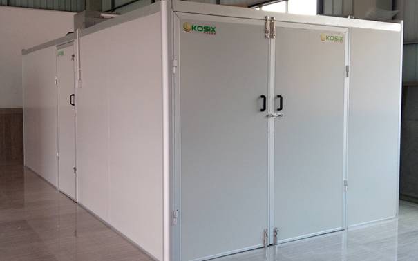以中药材烘干为例,东莞市科信新能源设备有限公司中药材烘干领域积累了丰富的经验,在全国各地都有成功的中药材烘干案例。科信海南莪术烘干位于海南省某药材公司,采用九风机双机接力标准烘房,单次烘干2000kg莪术切片,烘干时间12小时。烘房尺寸(长宽高)为9600*4500*2100mm,保温板材质为10公分聚氨酯保温板,配置了2台15P九风机空气能热泵烘干除湿机和2套475强排风机。项目建设完成后,进入运行阶段,最终烘房数据显示,烘干时间8小时达到客户标准,与客户之前装的烘房相比,同等8小时工况相比,成色提升和干燥度都有较大提升。客户非常满意,全额付款并与进一步协商后续多个烘房的建造。