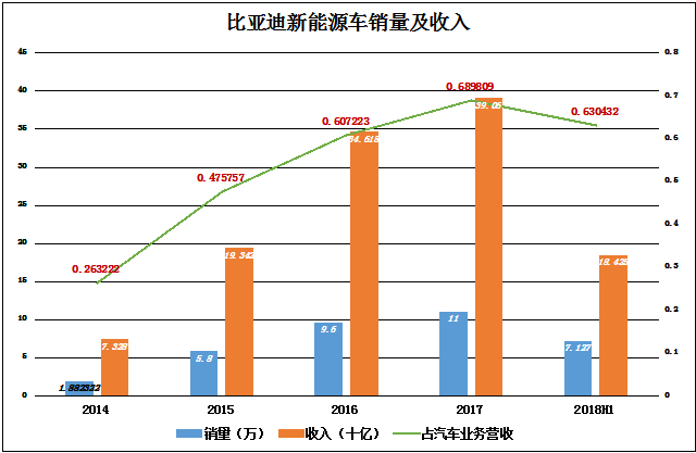 2014年以来,比亚迪燃油车销量在30万辆一线徘徊不前。2017年破位下行,预计2018年最好的结果不过是回到30万辆以上。但正如上文所说,比亚迪已经不是传统汽车企业,不应以燃油车销量多寡判定业绩优劣。