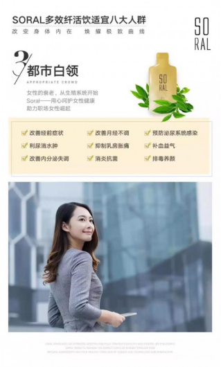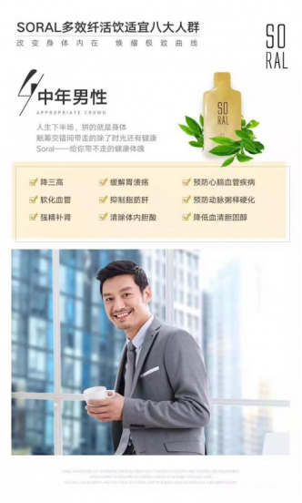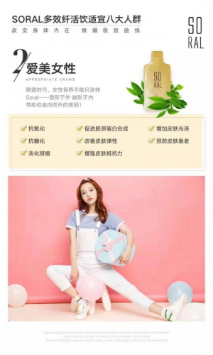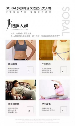 大品牌、好成分、好功效、好品质,Soral轻盈美颜饮集塑型美颜、日常保健、疫病预防等多重功效于一体,适合全家老小男女老少共同食用。花一份钱改善多种问题,每天一包即可补充人体所需六大营养元素,有效改善亚健康人群生活状态,尤其适合爱美女性、三高人群与老年人食用。