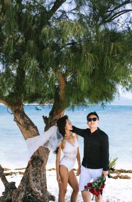 6.微笑是最上镜的表情,但婚纱照里最好别大笑,以免双眼周的细纹明显,失了仪态。
