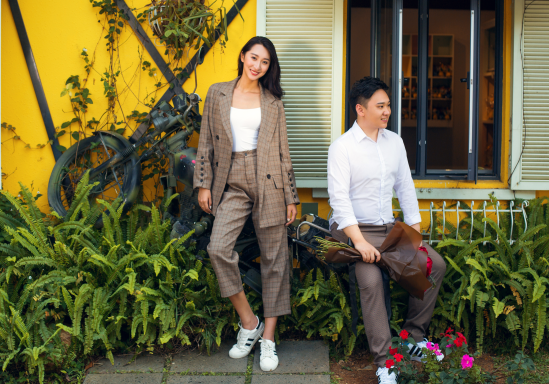 同样道理,当新人的眼睛正对镜头时,身体可以转成一定的角度,这样画面会显得更有生气和动势,还有立体感。