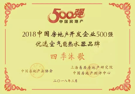 四季沐歌空气能舒适大热水品牌定位已深入消费者内心,并得到了社会各界的高度认可。企业先后通过ISO9001、ISO14001、国家3C认证、环境标志认证、康居认证等一系列认证,连续多年被评为“全国售后服务十佳单位”、“中国空气能行业十大杰出品牌”、“全球新能源500强品牌”。公司产品在国际市场顺利通过欧盟Solar Keymark、韩国新能源、美洲SRCC、北美CSA、澳洲STANDARD MARK、南非SABS等各大洲的产品认证。随着国家城市化发展的加快, 人民生活水平的提高及节能环保意识的增强,节能、环保、舒适的四季沐歌空气能大热水大采暖产品愈来愈受到市场青睐,作为高层住宅、自建房主流产品进入全国市级及乡镇农村市场,并以每年30%比例速度增长。
