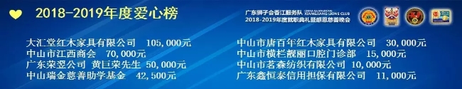 广东中山狮子会香江服务队慈善爱心企业捐款名单