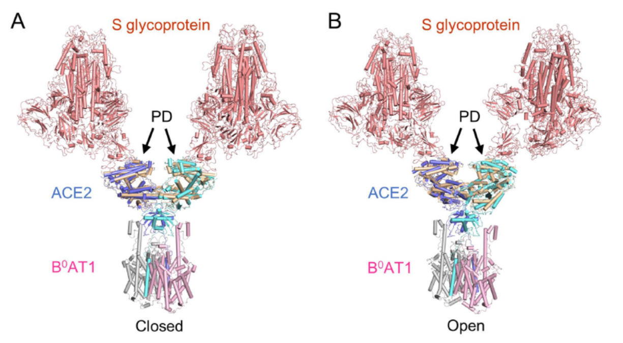 受体ACE2-B0AT1复合物:呈现开放和关闭两种构象