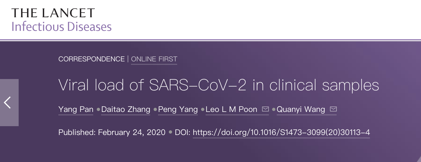 当地时间2月24日,北京疾控中心、香港大学的研究团队在顶级医学期刊《柳叶刀-传染病》(The Lancet Infectious Disease)发表了一篇通讯文章,报告了从82名不同感染阶段确诊患者中收集的不同类型的临床样本病毒载量,试图对这一问题进行解答。