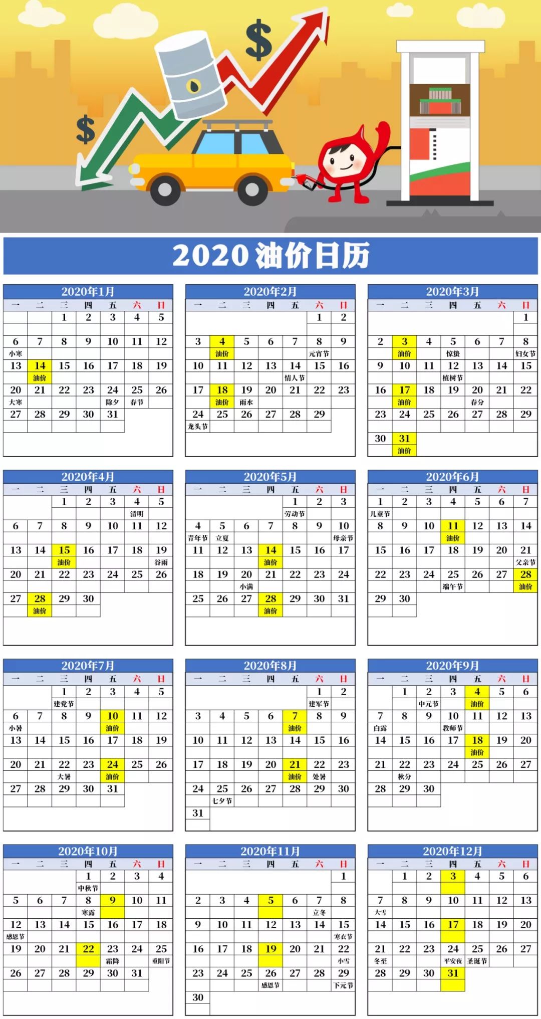 让我们一起来回顾一下2019年全年油价调整的情况: