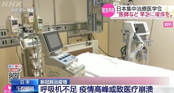 央视新闻客户端4月7人消息,随着新冠肺炎确诊病例增加,日本大阪、神奈川、福冈、宫城等9个府县都出现呼吸机不足的情况。